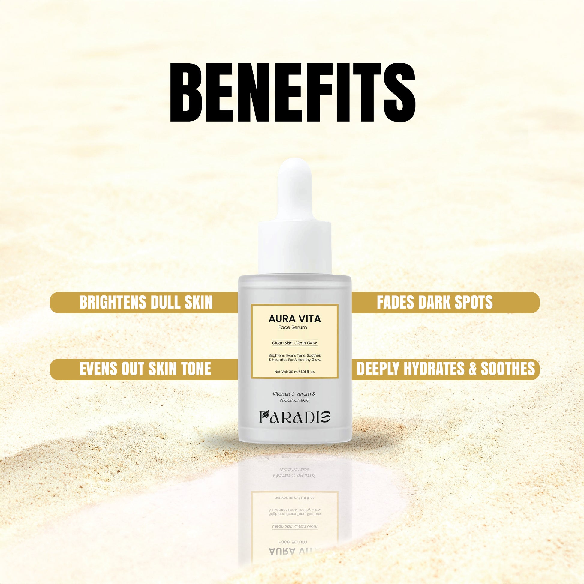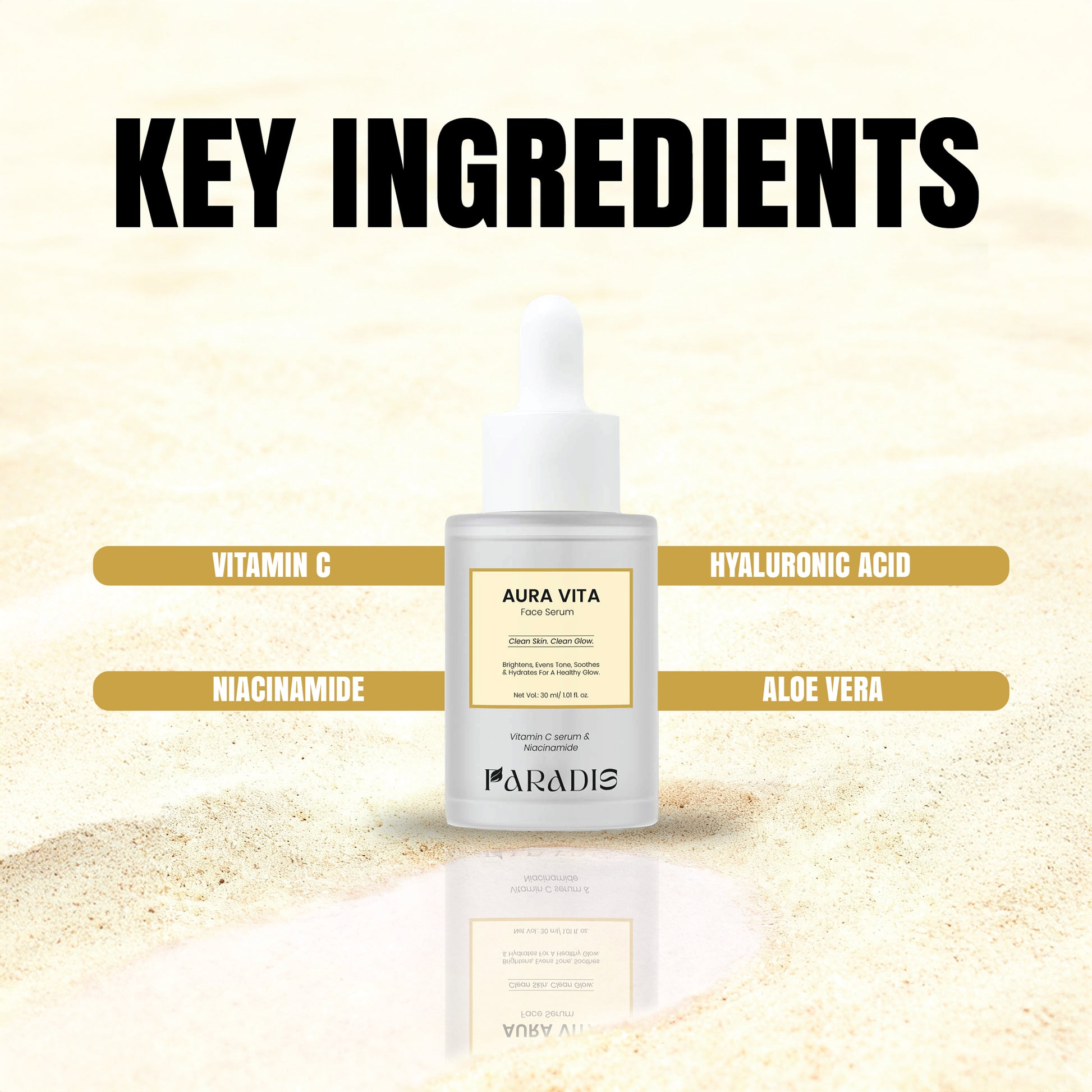 Vitamin C: Brightens skin, fades dark spots, and enhances radiance.